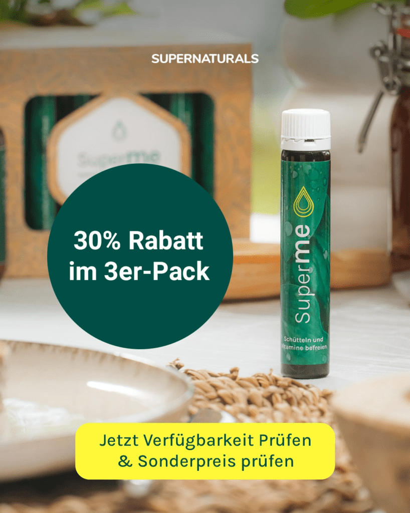 Supernaturals liefert all diese Nährstoffe in einem einzigen Shot – hochdosiert, aus natürlichen Quellen, nach höchsten Qualitätsstandards hergestellt.